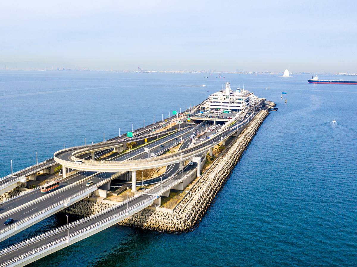Tokyo Bay Aqua-Line, Japan – A unique bridge-and-tunnel combination spanning 15.1 km, including a 9.6 km underwater tunnel (Aqua Tunnel) connecting Kawasaki and Kisarazu. In the middle, an artificial island called Umihotaru serves as a rest area and tourist attraction.